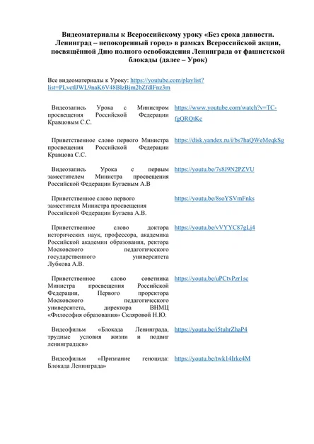 Видеоматериалы Открытого урока – «Без срока давности. Ленинград – непокоренный город».docx